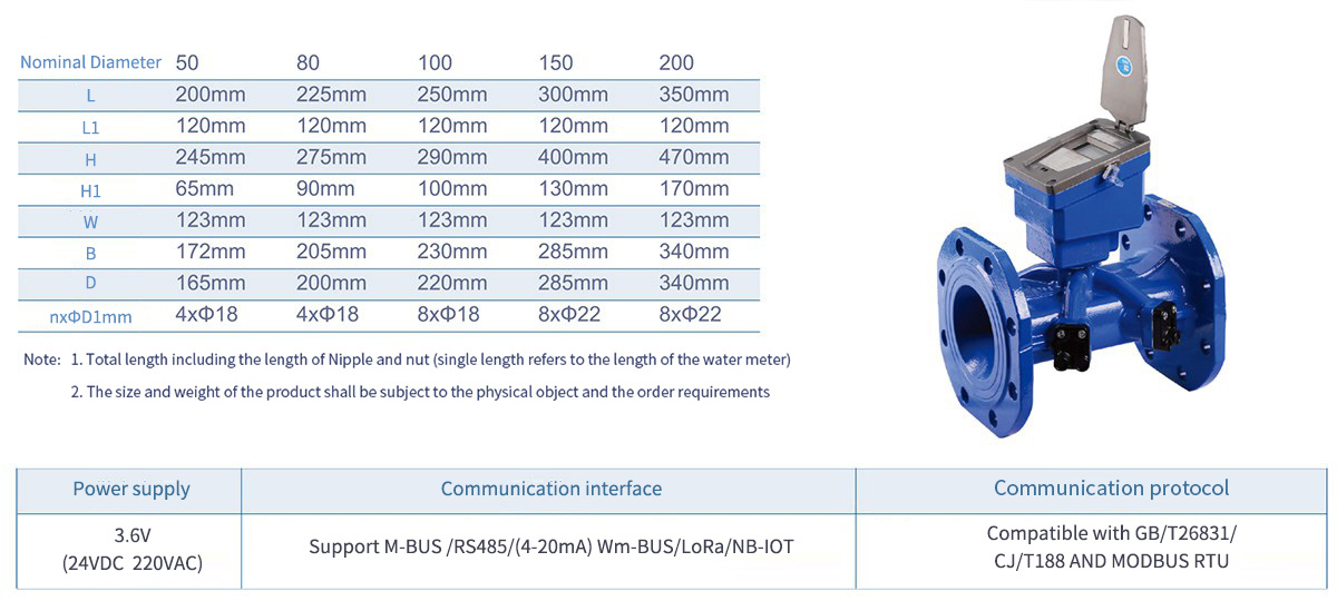 Ultrasonic remote water meter is composed of flow sensor and microprocessor, and adopts advanced ultrasonic measurement technology to measure the flow of water flowing through the pipeline. It can communicate with other devices through wireless or M-BUS interface to form a remote meter reading management system. The management department can overtake the data in the meter at any time to facilitate the management of user water consumption.