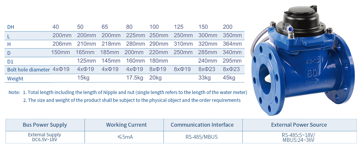 Under the measurement conditions, continuous flow, memory and display of the total amount of cold (hot) water flowing through the enclosed full pipe.