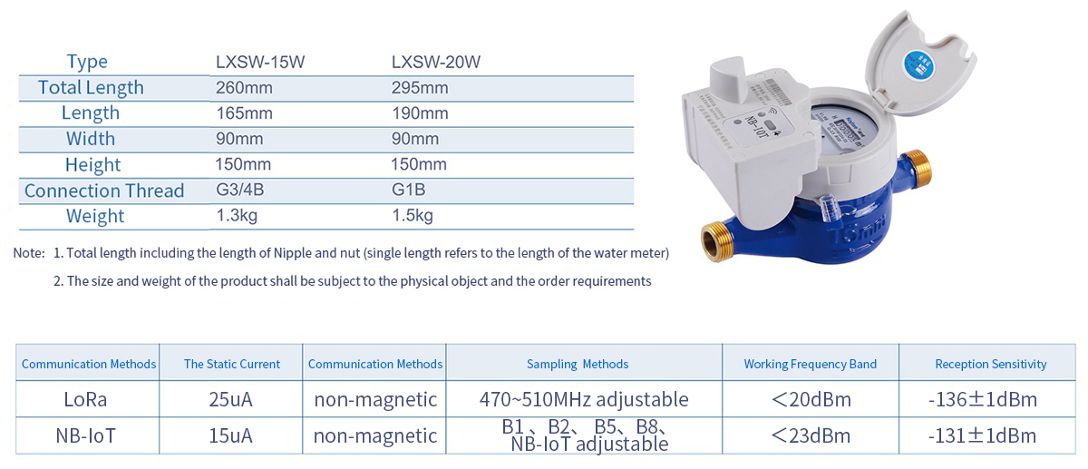 This series of products is an electromechanical separated IoT water meter, which can separate the electronic device (data sampling, wireless transmission) and the mechanical water meter completely independently, and realize the wireless upload of water volume information through the NB-loT/Lora network.