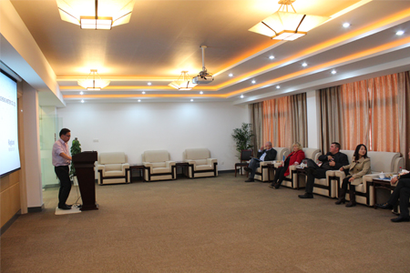 參觀完畢,沈經理在會客廳中為客戶講解精誠儀表目前在技術研發、產品質量、生產管理上的發展進程,讓客戶深入了解公司的現狀。