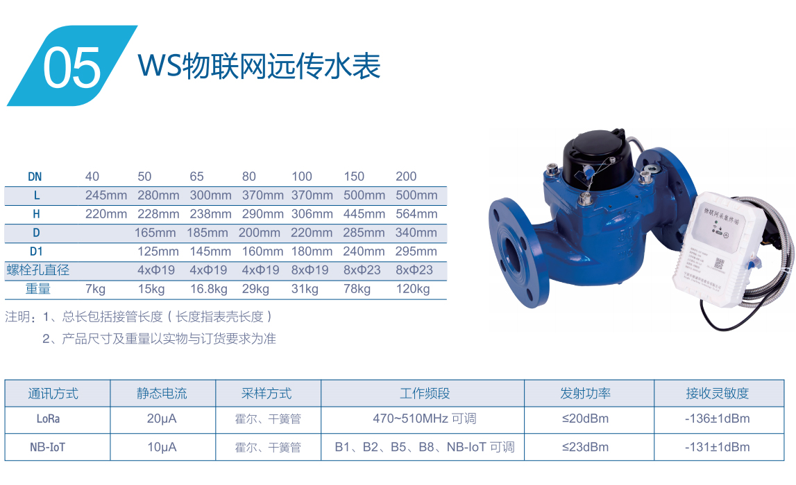 ●通信方式可選:無線LoRa 或NB-IOT、GPRS, 有線RS-485 或M-BUS。