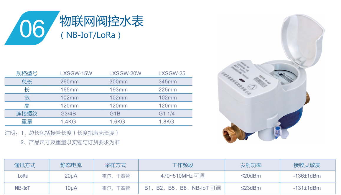 產品展示  ——  物聯網水表系列   ——   物聯網閥控水表(NB-loT/LoRa)