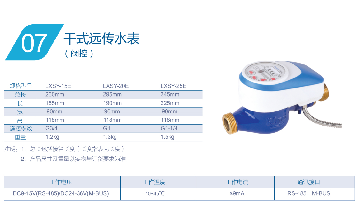 產品展示  ——  有線遠傳水表系列   ——   干式遠傳水表(閥控)
