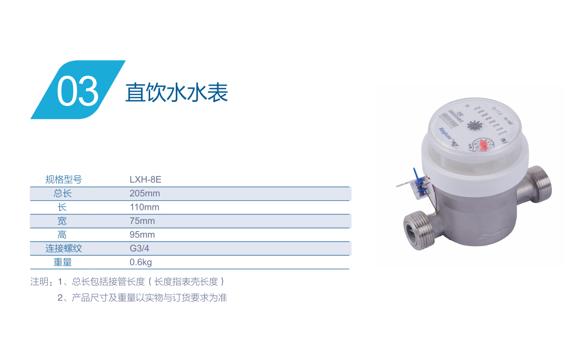 在測(cè)量條件下,連續(xù)測(cè)量、記憶和顯示流經(jīng)封閉滿管道中可直接飲用的冷水總量。
